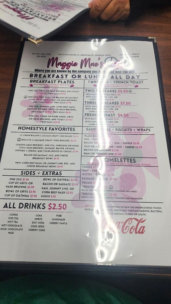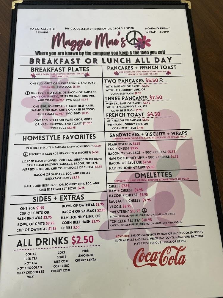Nestled in the heart of Brunswick, GA, Maggie Mae's is your go-to destination for an authentic American dining experience. With a cozy outdoor terrace and a welcoming atmosphere, it’s perfect for breakfast, lunch, or dinner. Savor local specialties, quick bites, and healthy options while enjoying exceptional coffee in a relaxed setting. Known for its speedy service and child-friendly menu, Maggie Mae's caters to everyone, including groups and solo diners. Accessibility features ensure everyone can enjoy the experience, and with takeaway and delivery options available, it’s never been easier to indulge. Come dine with us today!